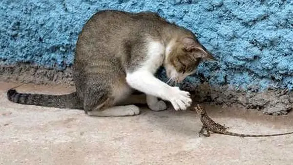 ببینید / گربه باهوش چطور مارمولک را شکار کرد؟ + فیلم