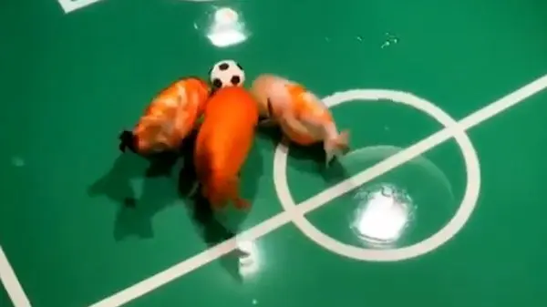 به گزارش رکنا، یکی از عجیب ترین اتفاقات را زندگی ماهی ها ببینید. در این فیلم مشاهده می شود که یک فرد فضای داخل حوض را به شکل زمین فوتبال در آورده است و در آن چند ماهی مانند فوتبالیست ها منتظر بازی هستند. این فرد به محض اینکه یک توپ با طراحی توپ فوتبال را اما در سایز کوچک در این حوض به شکل زمین فوتبال می اندازد همه ماهی ها به دنبال توپ می دوند و در تلاش برای گلزنی به حریف هستند!