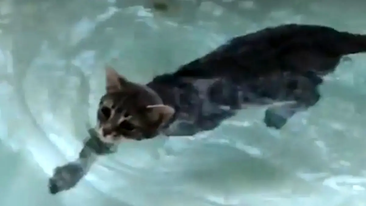 رکنا: گربه شناگر را ببینید که با چه لذتی مشغول آب بازی است!