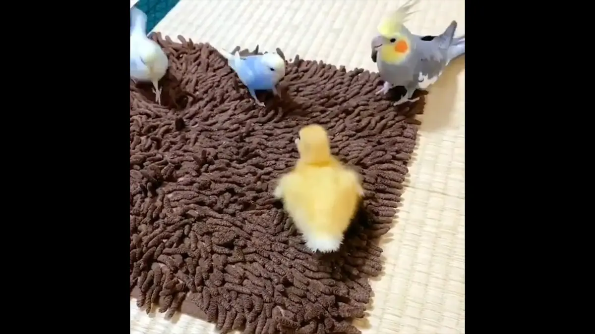 به گزارش رکنا، در این فیلم می بینید که عروس هلندی ، 2 مرغ عشق و یک جوجه اردک که در خانه بسیاری از افراد پرنده دوست به عنوان حیوان خانگی وجود دارد روی یک موکت پادری در خانه در حال راه رفتن و بازی هستند.