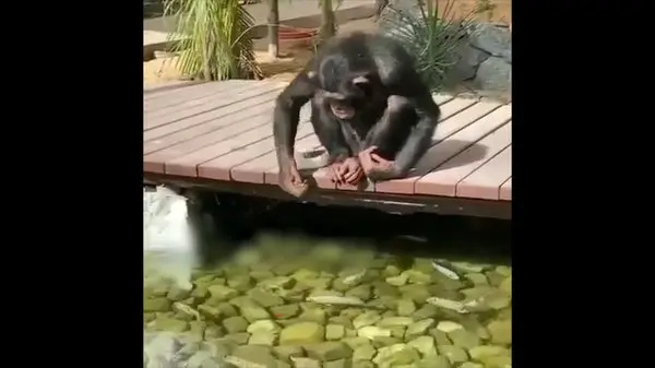 غذارسانی به ماهی ها توسط میمون + فیلم