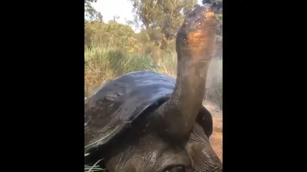 حمام کردن لاک پشت غول پیکر را ببینید / فیلم