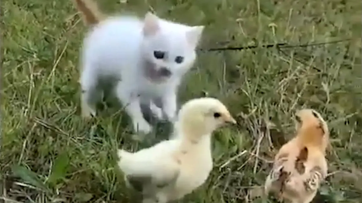 رکنا: این گربه و جوجه ها با هم دوست هستند.