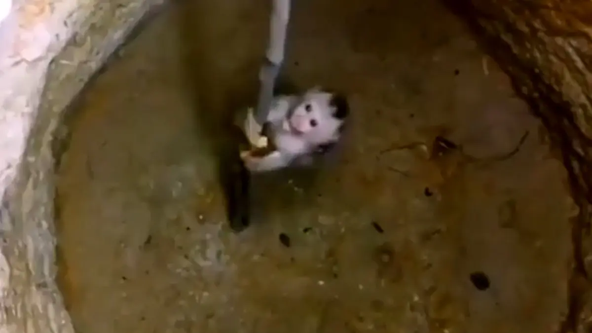نجات بچه میمون از ته چاه / فیلم