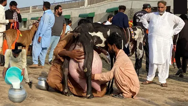 رکنا: یکی از بزها در مسابقه شیردوشی بزهای پاکستانی با 3730 کیلوگرم شیر اول شد.