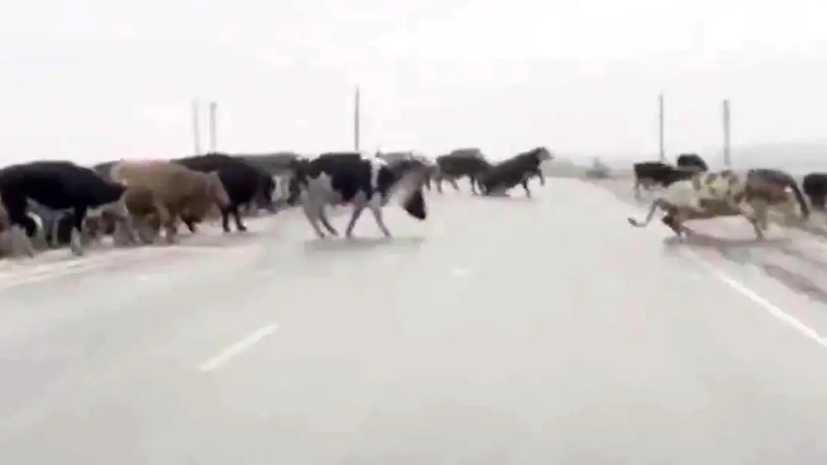 به گزارش رکنا، ویدئویی از لحظه عبور چند گاو از یک جاده یخ زده منتشر شده که تعدادی از آنها هنگام عبور روی زمین لیز میخورند.