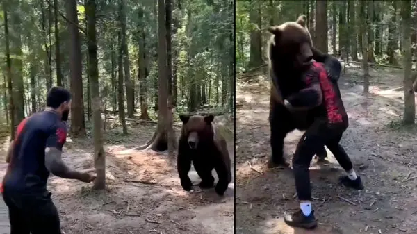 رکنا: ویدئوی رفاقت مرد جوان با خرس در فضای مجازی پربازدید شد.