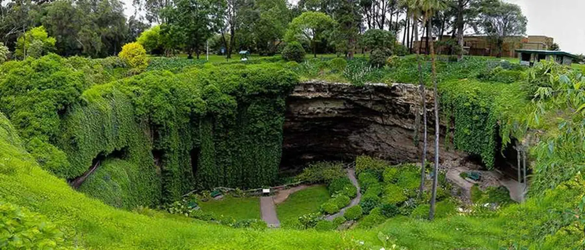 رکنا: منطقه ای در جنوب شرقی بخش های جنوبی استرالیا نزدیک Mount Gambier وجود دارد که با ساختارهای آتشفشانی زیادی همچون دهانه های آتشفشانی، دریاچه ها، غارهای آهکی، غارهای پر آب و گودال ها پوشیده شده است. یکی از این گودال ها دقیقا در نزدیکی بزرگراه شرقی Jubilee قرار گرفته و به دلیل محیط زیبا و دل انگیز خود ارزش بازدید دارد. آنچه زمانی یک غار معمولی حاصل از فرسایش سنگ های آهکی توسط آب دریا بود، با فرو ریختن سقف اش تبدیل به مکانی ایده آل برای ایجاد باغی زیبا گشت.