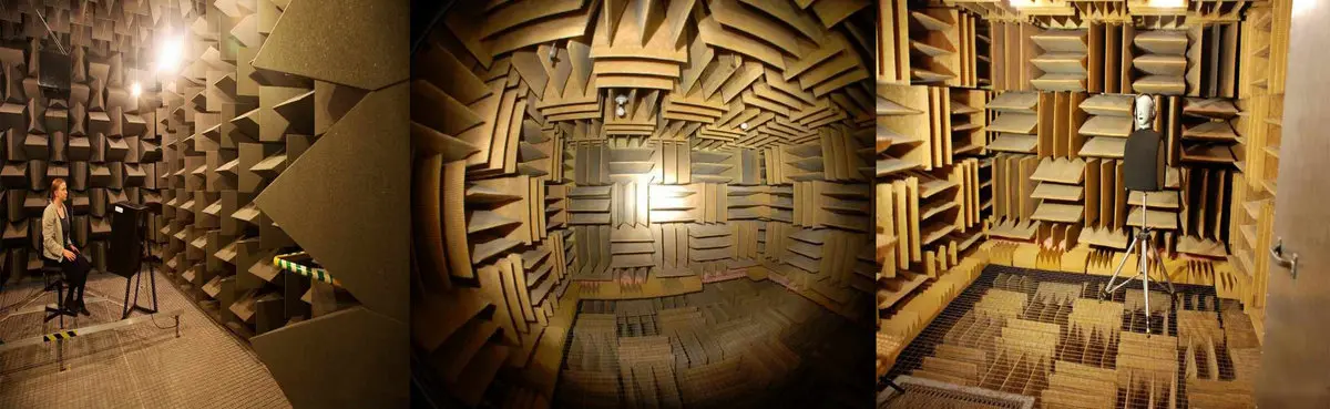 " برای برخی از افراد این سکوت بی پایان می تواند ترسناک باشد ، چرا که وقتی وارد اتاق می شوید همه چیز به طرز دلهره آوری ساکت است به طوری که ممکن است به روی گوشهایتان احساس فشار داشته باشید. بین سی ثانیه تا یک دقیقه بعد از ورود به اتاق ، احساس می کنید صداهایی را میشنوید اما صدایی که گوش خودتان ایجاد می کند ، بعد از بیست دقیقه کم کم صدای استخوان های خود که با یکدیگر برخورد می کنند را می شنوید و اگر تا سی دقیقه دوام بیاورید و در اتاق بمانید احتمالا بتوانید صدای طپش قلبتان را بشنوید. هر چند این مدت زمان از هر فرد تا فرد دیگر متفاوت است. "