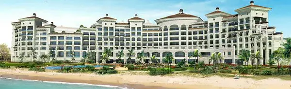این هتل شیک در کنار آبهای نیلگون خلیج فارس قرار دارد و در ساخت آن از معماری کاخهای عربستان الهام گرفته شده است.