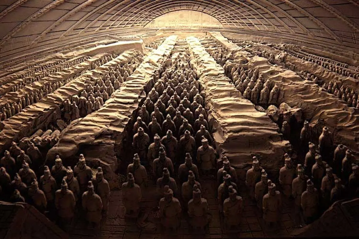شی هانگ اولین امپراتور چین بود که ۲۱۰ سال قبل از میلاد در گذشت و آرامگاهش در مرکز چین مدفون شده است. این آرامگاه تونلهای زیرزمینی دارد که پر از وسایل است، این وسایل شامل ارتش، خانواده، کارمندان، اسب، و کارکنان و..است که همگی از جنس سفال هستند (وسایلی که پادشاه در زندگی پس از مرگ به آنها احتیاج دارد). تا به الان ۲۰۰۰ سرباز سفالین یافت شده است ولی دولت چین بخاطر احترام به سنت باستانی حفاریها را ممنوع کرده است و انتظار می رود این مجموعه سفالین تا ابد کشف نشده باقی بماند.