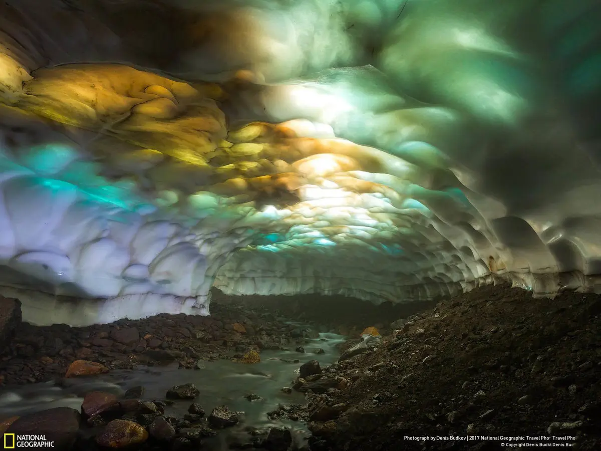 عکس نشنال جئوگرافیک به تصویری دیدنی از غار یخی کوه آتشفشان موتنوفسکی اختصاص یافت.