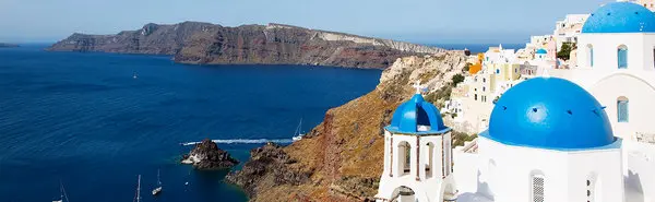 یکی از زیباترین و شناخته شده ترین جزیره های این کشور که گردشگران زیادی را به خود جذب می کند، سانتورینی (Santorini) نام دارد؛ این جزیره شگفت انگیز در دریای اژه واقع شده است و از خاک یونان 200 کیلومتر فاصله دارد. سانتورینی در حدود 15,500 نفر سکنه دارد و مساحت آن 73 کیلومتر مربع است. این جزیره بیشتر به خاطر معماری و رنگ آمیزی خاص بناهایش معروف است. اکثر ساختمان های این جزیره سفیدرنگ هستند و در، پنجره و سقف هایی به رنگ آبی دارند. ترکیب این رنگ ها در کنار ساحل و آسمان زیبا، منطقه سانتورینی را تبدیل به یک مکان آرامش بخش و منحصر به فرد می کند.