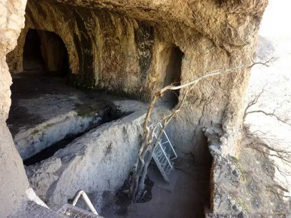 این غار دژ مانند که تمام آن با حجاریهای طاقت فرسا به وجود آمده به استناد سکههایی که در اطراف آن به دست آمده است، به دورهی اشکانیان تعلق دارد و طی قرون متمادی به عنوان یک محل سکونت دائمی مورد استفاده قرار گرفته است. ورودی غار بصورت چهار گوش در اندازه 2.50 در 2.20 متر است و رو به شمال باز میشود. غار شامل دو طبقه است: طبقهی اول از چهار اتاق و فضاهای مرتبط به هم تشکیل شده است . طبقهی دوم غار حدوداً 3.4 متر بالاتر از کف قسمت اول غار ساخته شده است.