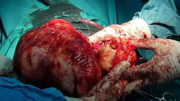 در این عمل یک توده 4 کیلوگرمی از شکم بیمار خارج شد و پس از عمل با مراقبت های پزشکی، بیمار در صحت و سلامت قرار دارد.برای ورود به کانال تلگرام ما کلیک کنید.
