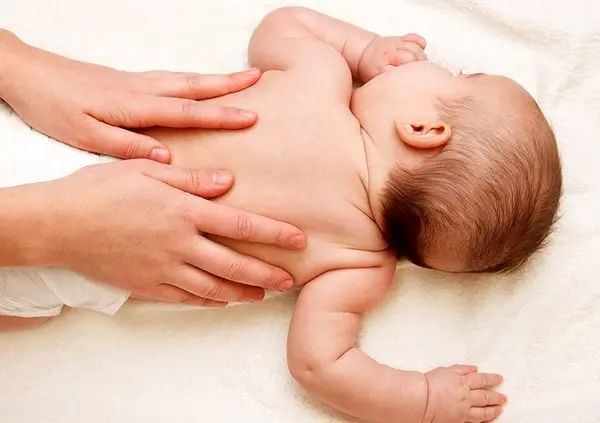 چند قطره روغن بادام شیرین را در ناحیه شکم، نزدیکی ناف کودک بریزید و به طرف عقربههای ساعت و به صورت دورانی ماساژ داده و کم کم محدوده ماساژ را آرام آرام گسترش میدهیم. این کار منجر به نرم شدن رودههای نوزاد و نرمی بافت محتویات روده میشود.