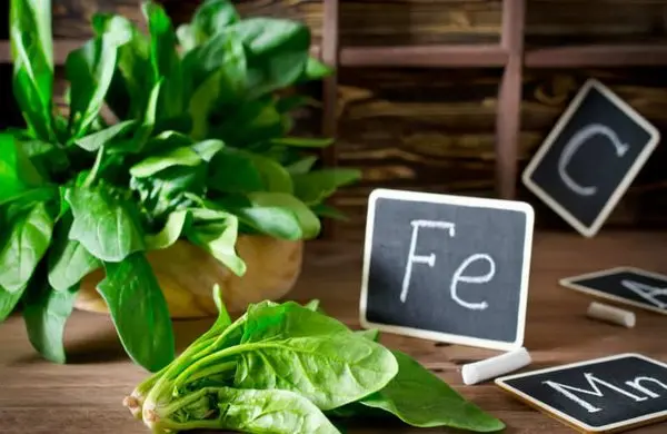 نصف فنجان اسفناج جوشیده دارای ۲/۳ گرم آهن است- حدود ۱۷% DV است.