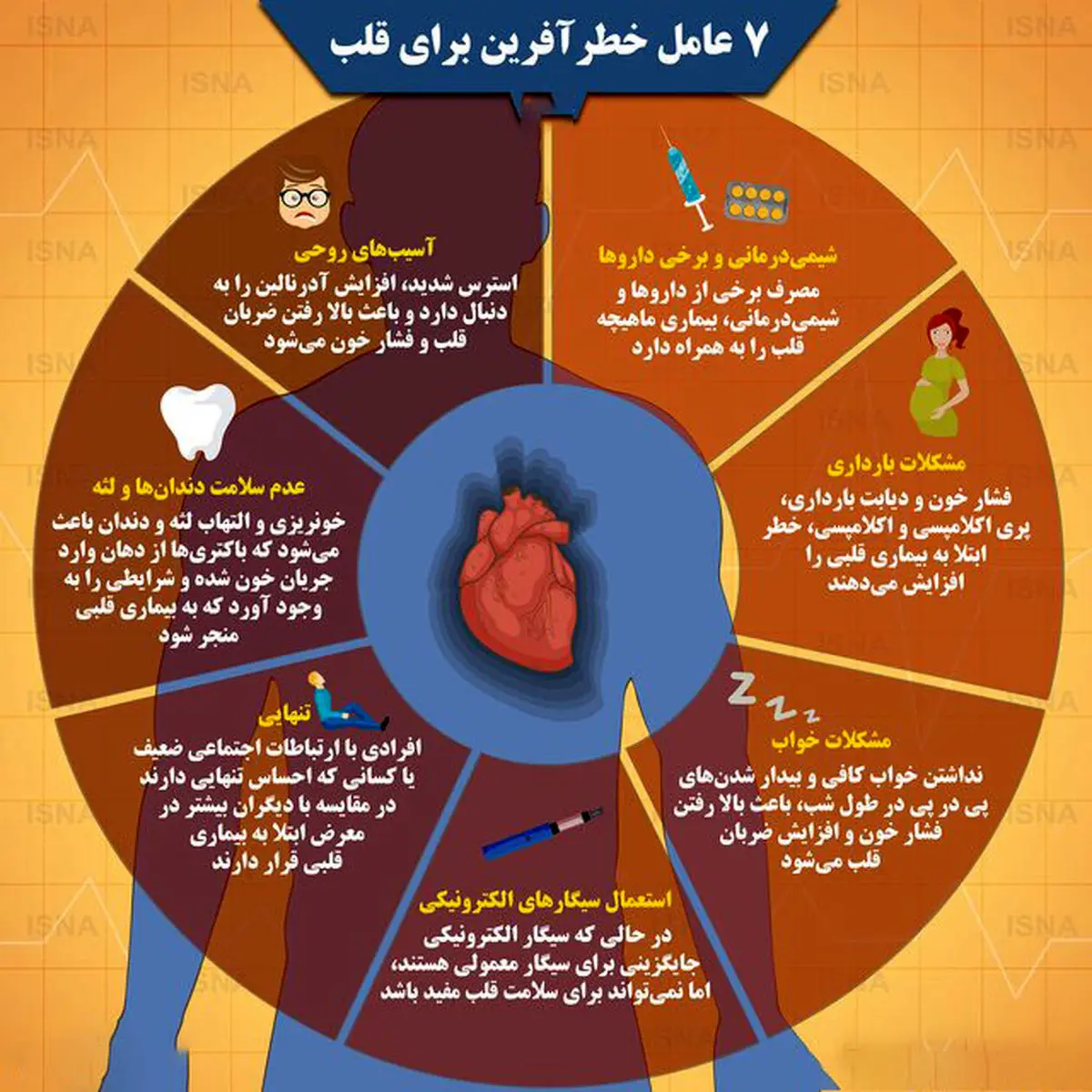 بر اساس گزارش سایت prevention، در کنار عواملی همچون فشار خون و کلسترول بالا و سابقه مصرف دخانیات، فاکتورهای خطرزای دیگری وجود دارند که فرد را در معرض ابتلا به بیماریهای قلبی قرار میدهند. از جمله فاکتورهایی که سلامت قلب را به خطر میاندازند و ممکن است افراد از تأثیرات آنها اطلاعی نداشته باشند، میتوان به مواردی همچون شیمیدرمانی و برخی داروها، مشکلات بارداری، مشکلات خواب، استعمال سیگارهای الکترونیکی، تنهایی، عدم سلامت دندانها و لثه، آسیبهای روحی اشاره کرد. در اینفوگرافی که مشاهده می کنید به این موارد پرداخته شده است. برای ورود به کانال تلگرام ما کلیک کنید.
