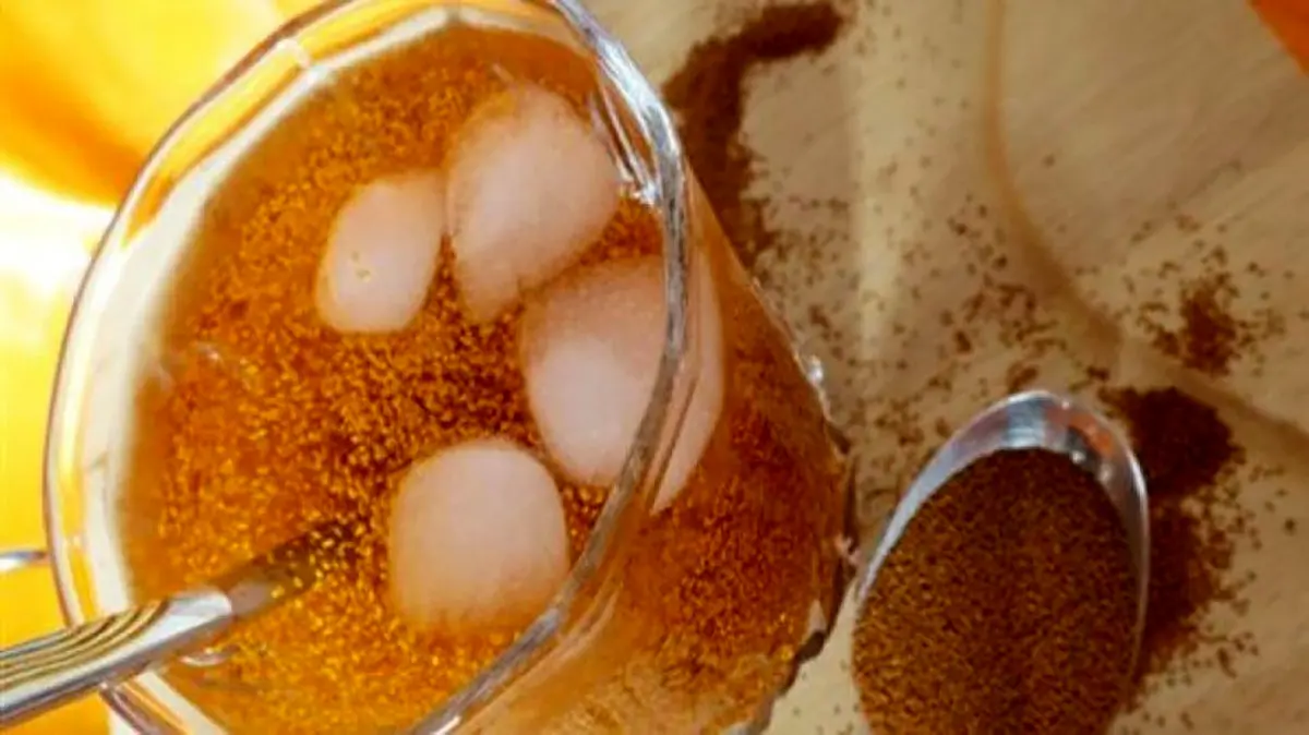 بعد از اضافه کردن آب، خاکشیر را هم بزنید تا دانههای آن جدا شوند.