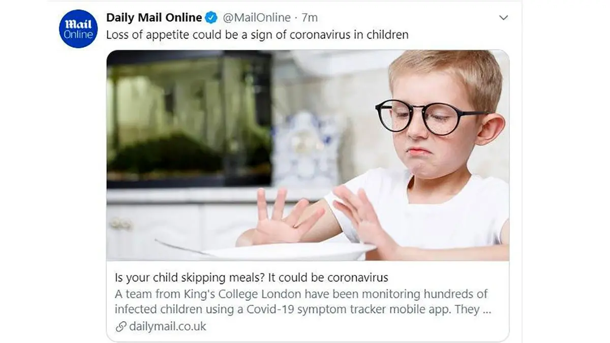 حوادث رکنا:محققان امپریال کالج از طریق اپلیکیشن ردیاب متوجه شدند که بی اشتهایی در کودکان میتواند نشانه ابتلا به کووید 19 باشد.