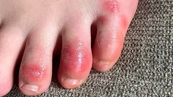 این یک التهاب پوست انگشتان پا بوده و شبیه تورم است و از جمله علائم طولانی مدت بیماری کرونا محسوب میشود اما انگشتان به ندرت تحت تأثیر قرار میگیرند.