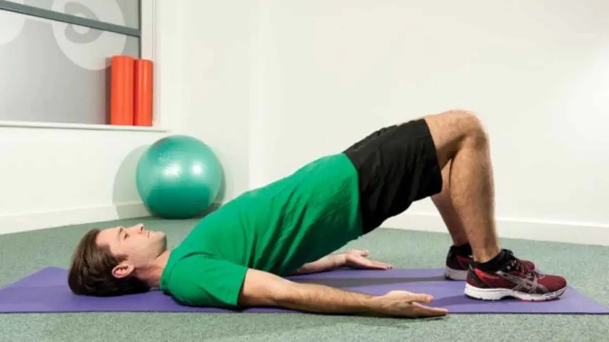 پل گلوت: به پشت دراز بکشید، بازوها را در پهلو قرار دهید. عضلات گلوت و شکم را منقبض کرده و سپس باسن خود را از زمین بلند کنید تا جایی که زانوها، باسن و شانهها در یک خط مستقیم قرار بگیرند. چند ثانیه در این حالت بمانید و به حالت اولیه برگردید و این حرکت را تکرار کنید.