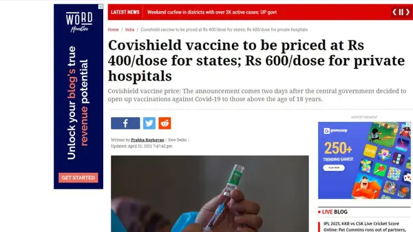 این تصمیم دولت هند در پی سیاست عرضه واکسن در بازار آزاد اتخاد شده است.آخرین قیمت های بازار ایران را اینجا کلیک کنید.