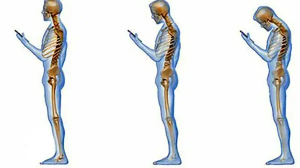 خم کردن سر و نگاه کردن به پایین برای کار کردن با تلفن همراه، معادل وزنه ای 27 کیلوگرمی روی گردن شما نیرو وارد می کند. این نیرو مشابه این است که چهار توپ بزرگ بولینگ یا کودکی هشت ساله از گردنتان آویزان شده باشد.