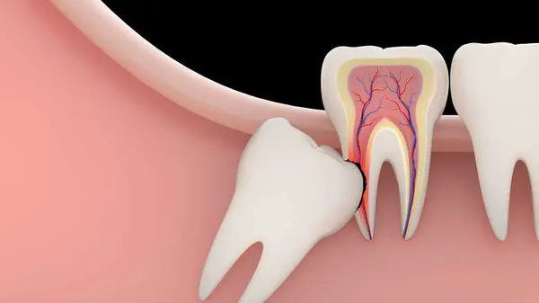 ۴- آسیب به دندانهای دیگر (Damage to other teeth) : یک دندان مولر سوم نهفته می تواند یک فشار ثابت و دایم را روی پشت دندان مولر دوم ایجاد کند. این فشار به مدت طولانی باعث تخریب دندان مولر دوم می شود بدون اینکه بیمار ممکن است هیچ چیزی را احساس کند.
