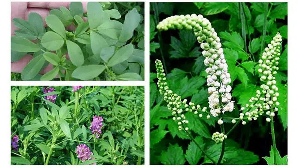 علاوه بر رژیم غنی از استروژن های گیاهی ، برخی از گیاهان می تواند بسیاری از عوارض یائسگی را تسکین دهند 1-شامل کوهوش سیاه Cimicifuga racemosa : این گیاه مدت هاست برای برطرف کردن گرفتاری زنان توصیه می شود چون دارای موادی استروژنی است که ناراحتی های ناشی از یائسگی مخصوصا گرگرفتگی را کاهش می دهد.
