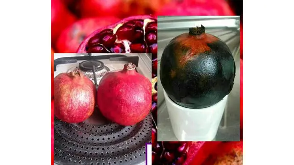 یک عدد انار را روی شعله پخش کن با حرارت خیلی کم قرار دهید تا آهسته داخل خودش به مدت 20 دقیقه بجوشد و پخته شود. اکنون داروی شما آماده است.