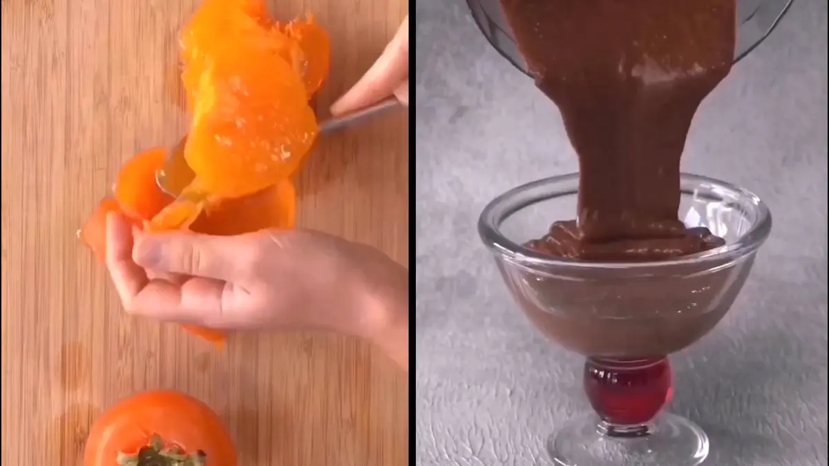 2 عدد خرمالوی رسیده، 2 عدد موز شیرین، 3 عدد مغز گردو و یک قاشق غذاخوری پودر کاکائو را با هم مخلوط کنید.