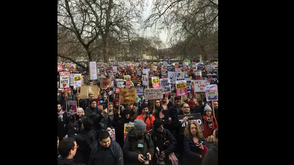 رکنا: هزاران تن از معترضان انگلیسی امروز (شنبه) با تجمع در خیابانهای مرکز لندن به لغو برنامه مهاجرتی آمریکا و نیز منع سفر شهروندان هفت کشور به ایالات متحده آمریکا اعتراض کردند.