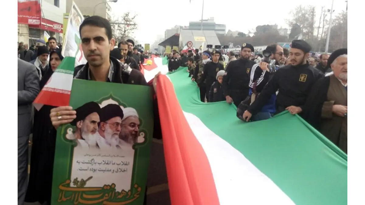 حمل طولانی‌ترین پرچم ایران در راهپیمایی ۲۲ بهمن +عکس