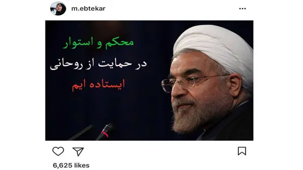 رکنا: ابتکار با انتشار تصویری از حسن روحانی در صفحه اینستاگرام خود با انتشار متنی آورده است: «محکم و استوار در حمایت از روحانی ایستادهایم»