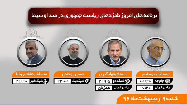رکنا: امروز کدام یک از کاندیدادر رسانه ملی حضور پیدا می کنند.
