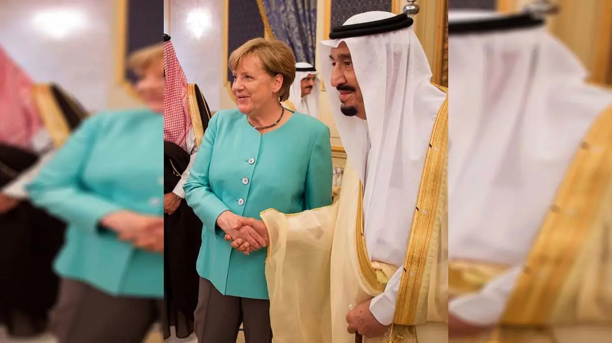 مرکل صدر اعظم آلمان بدون حجاب دست در دست پادشاه عربستان!+ عکس
