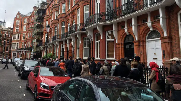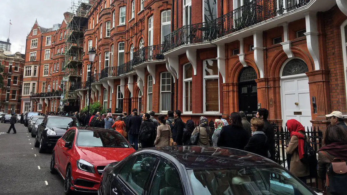 صف طولانی و عجیب مقابل سفارت ایران در لندن را ببینید!