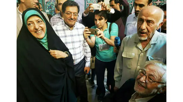 رکنا: دیدار خانم ابتکار و دکتر یزدی در حسینیه ارشاد پس از اخذ رای