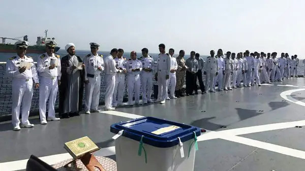 رکنا: صندوق انتخابات ریاست جمهوری روی عرشه کشتی در دریای عمان آماده اخذ رای است.