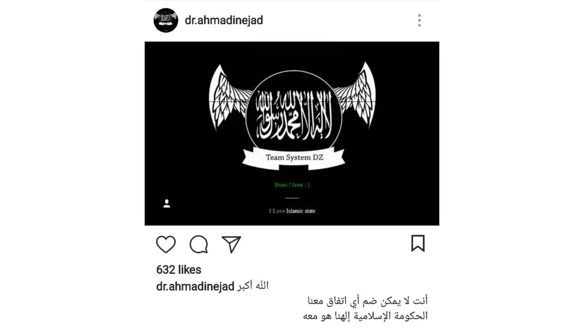 رکنا: اکانت اینستاگرام محمود احمدینژاد دقایقی قبل هک شد. گفته می شود هواداران داعش اینستاگرام احمدی را هک کرده اند .