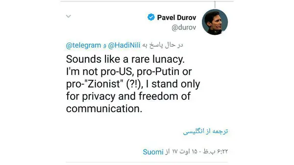 مدیر تلگرام به اظهارات قاضی پور واکنش نشان داد