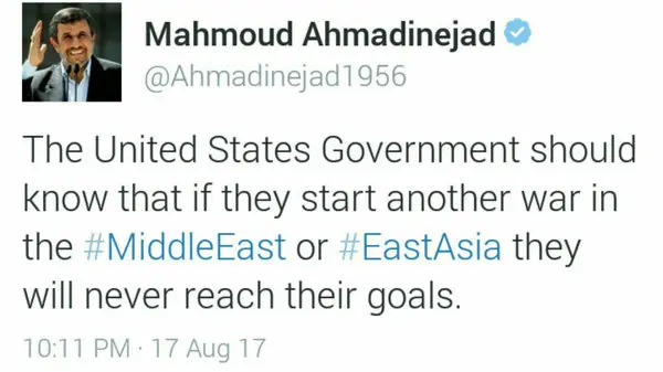 هشدار توییتری محمود احمدی نژاد به دولت دونالد ترامپ + عکس