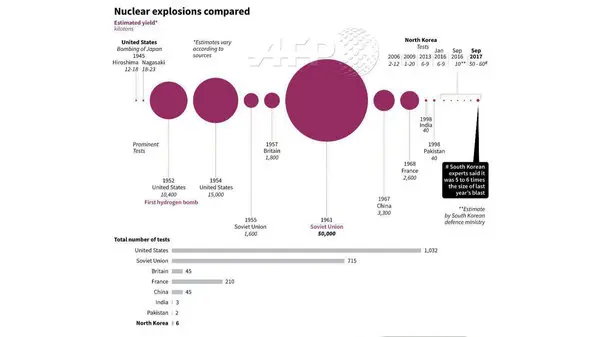 در این گزارش آمده است که کره شمالی اولین کشوری نیست که در آزمایش بمب هستهای موفق بوده و از سال 1954 تاکنون 2000 آزمایش بمب هستهای انجام شده که بیشتر آن را آمریکا انجام داده است.