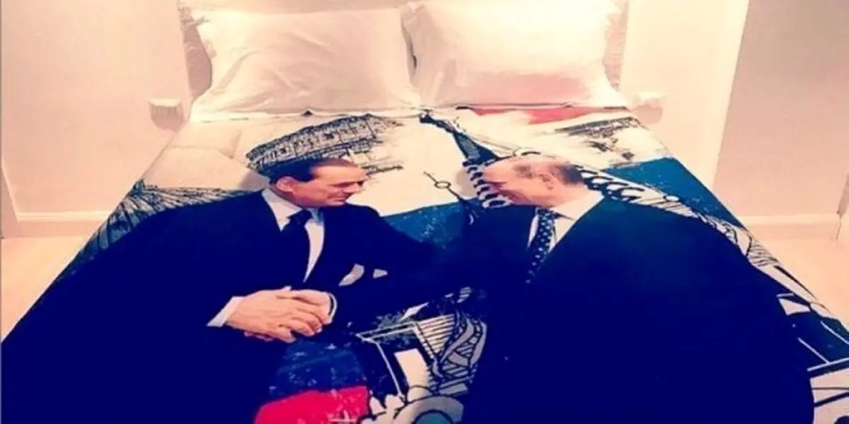 رکنا: سیلویو برلوسکنی، نخست وزیر اسبق ایتالیا به مناسبت سالروز تولد ولادیمیر پوتین، رئیس جمهور روسیه به شهر سوچی سفر کرده و یک روتختی سایز دونفره که طرحی از دست دادن برلوسکنی با پوتین روی آن تصویر شده را به عنوان هدیه تولد به او داد.