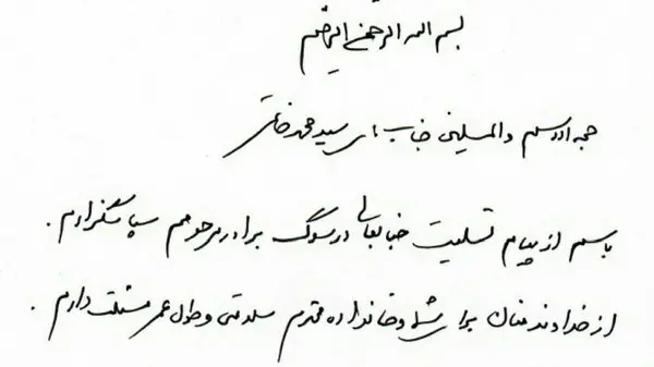 با سلام از پیام تسلیت جنابعالی در سوگ برادر مرحومم سپاسگزارم