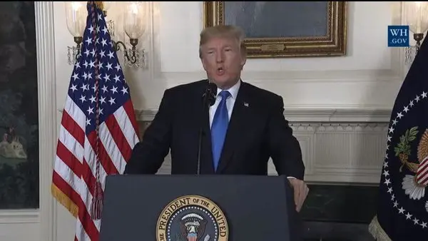 رئیس جمهور آمریکا خاطرنشان کرد: ایران 1.7 میلیارد دلار از ایالت متحده دریافت کرده و مقداری از آن از طریق فیزیکی به ایران منتقل شده است.تصور کنید این مقدار زیاد پول نقدی را که ایرانی‌ها در انتظار دریافت آن هستند. سپاه پاسداران از پول های زیادی برای حمایت مالی از عملیات های تروریستی استفاده کرد.