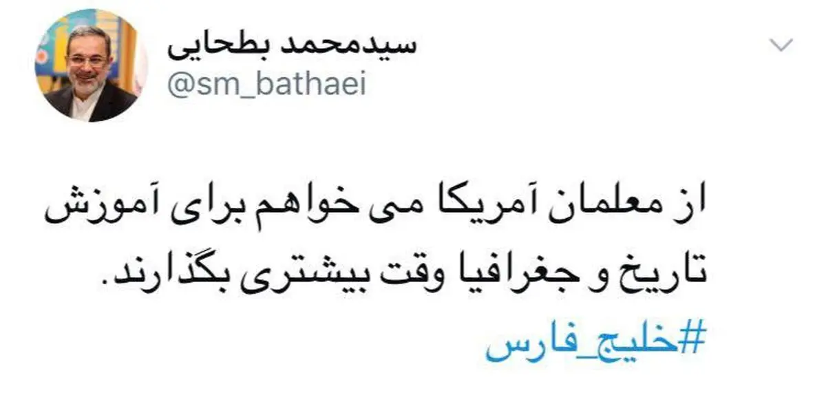 رکنا: بطحایی: از معلمان آمریکا می خواهم برای آموزش تاریخ و جغرافیا وقت بیشتری بگذارند!