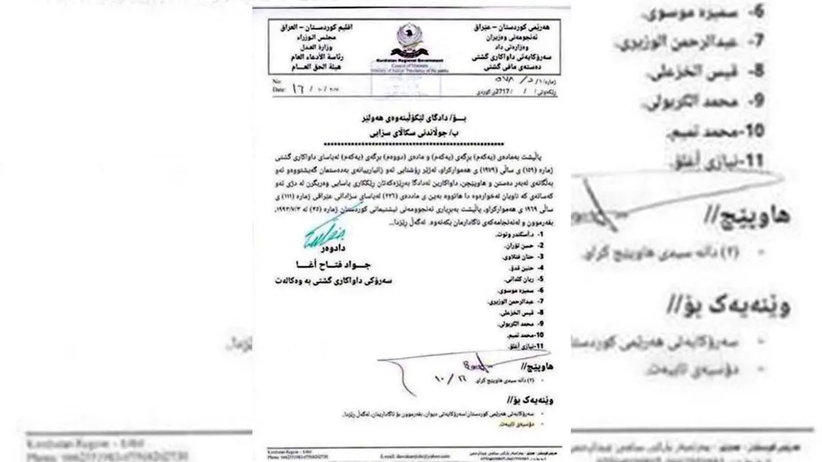 دادستانی اقلیم کردستان حکم جلب ۱۱ مسؤول عراقی را صادر کرد