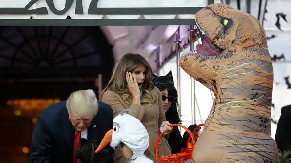 ملانیا ترامپ با دیدن یک دایناسور در جشن هالووین جا خورد! + فیلم و عکس